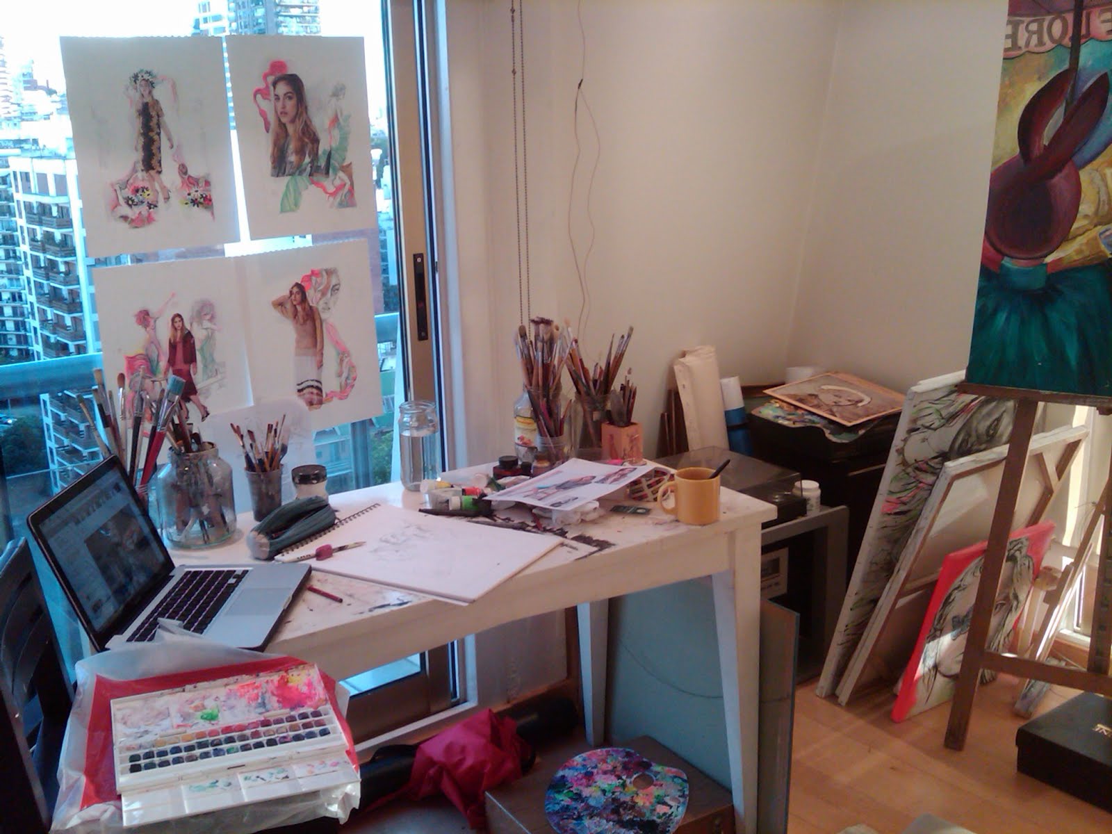 Watercolors and acrylics at a dining table in London. 11/2011